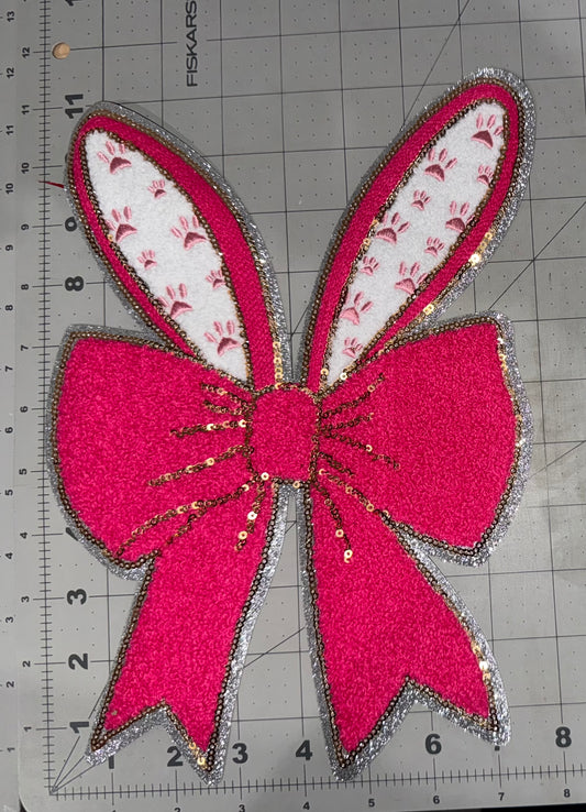 Bunny ears W/ Bow Chenille Patch